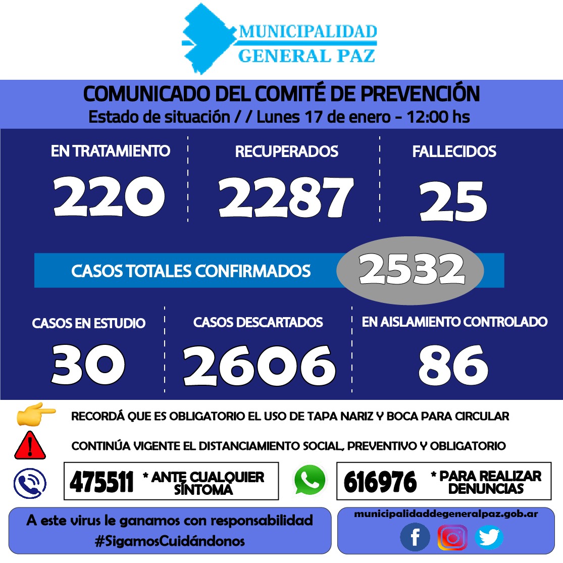 - En este momento, más que nunca, apelamos a la conducta y responsabilidad individual y social. Ante la aparición de síntomas, llamá al 475-511.