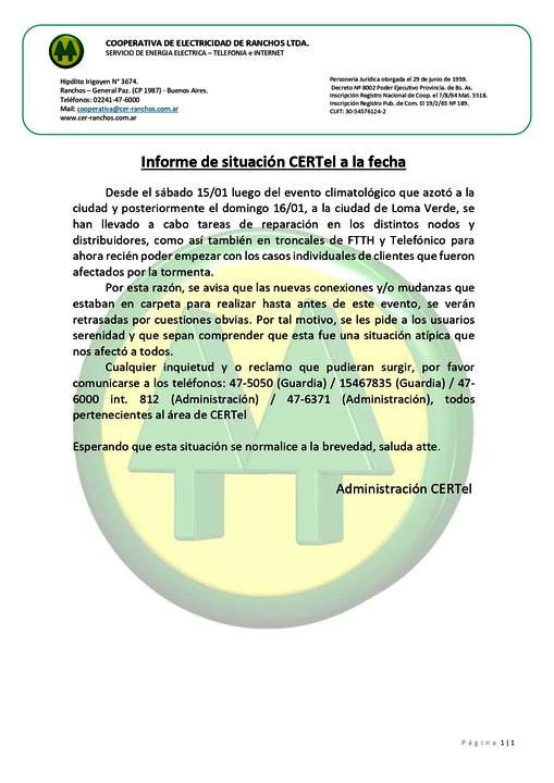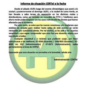 Actualidad CERTel: Informe de situación evento climatológico en Ranchos y Loma Verde 19 de enero de 2022104 visitas 0 minutos de lectura