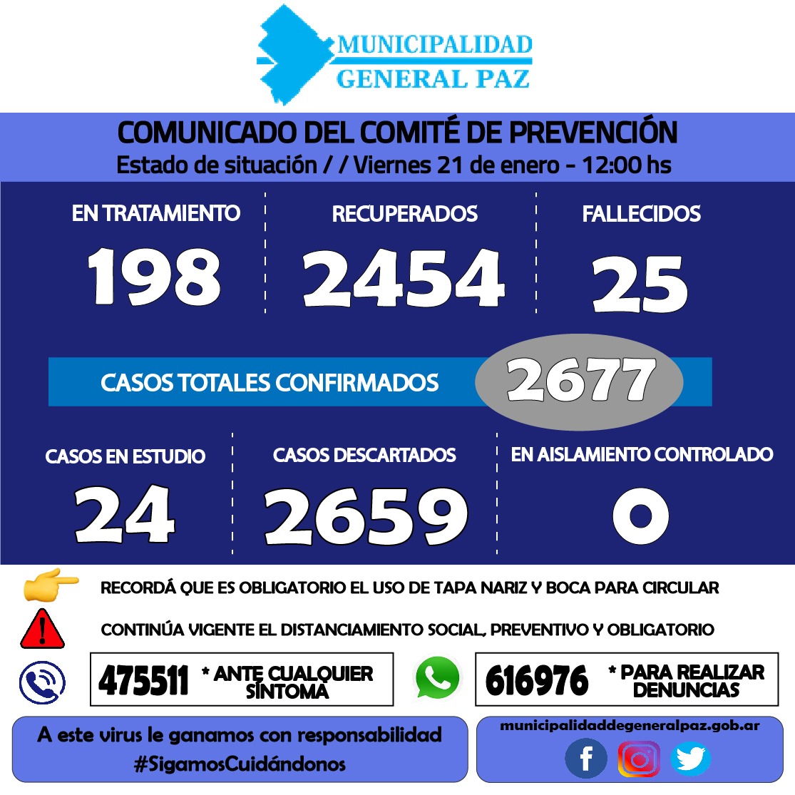 - En este momento, más que nunca, apelamos a la conducta y responsabilidad individual y social. Ante la aparición de síntomas, llamá al 475-511.