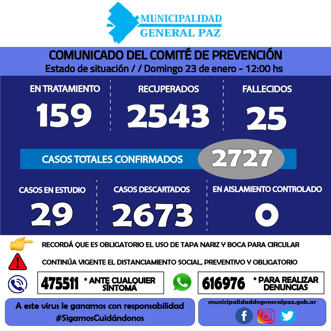 - Se registran 159 (ciento cincuenta y nueve) casos en control evolutivo.