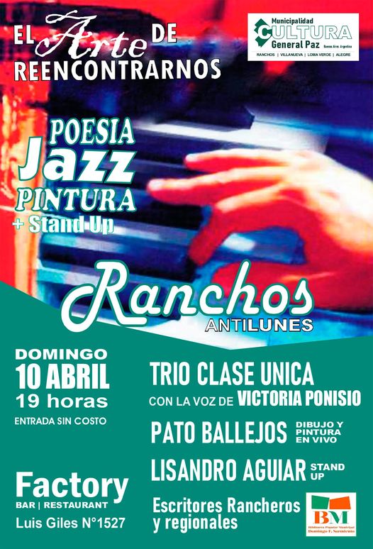 Actualidad Ranchos – El arte de reencontrarnos: Poesía, Jazz, Pintura y Stand Up 4 de abril de 2022107 visitas 0 minutos de lectura El próximo domingo 10 de abril desde las 19 horas en Factory Bar-Restaurant, entrada sin costo.