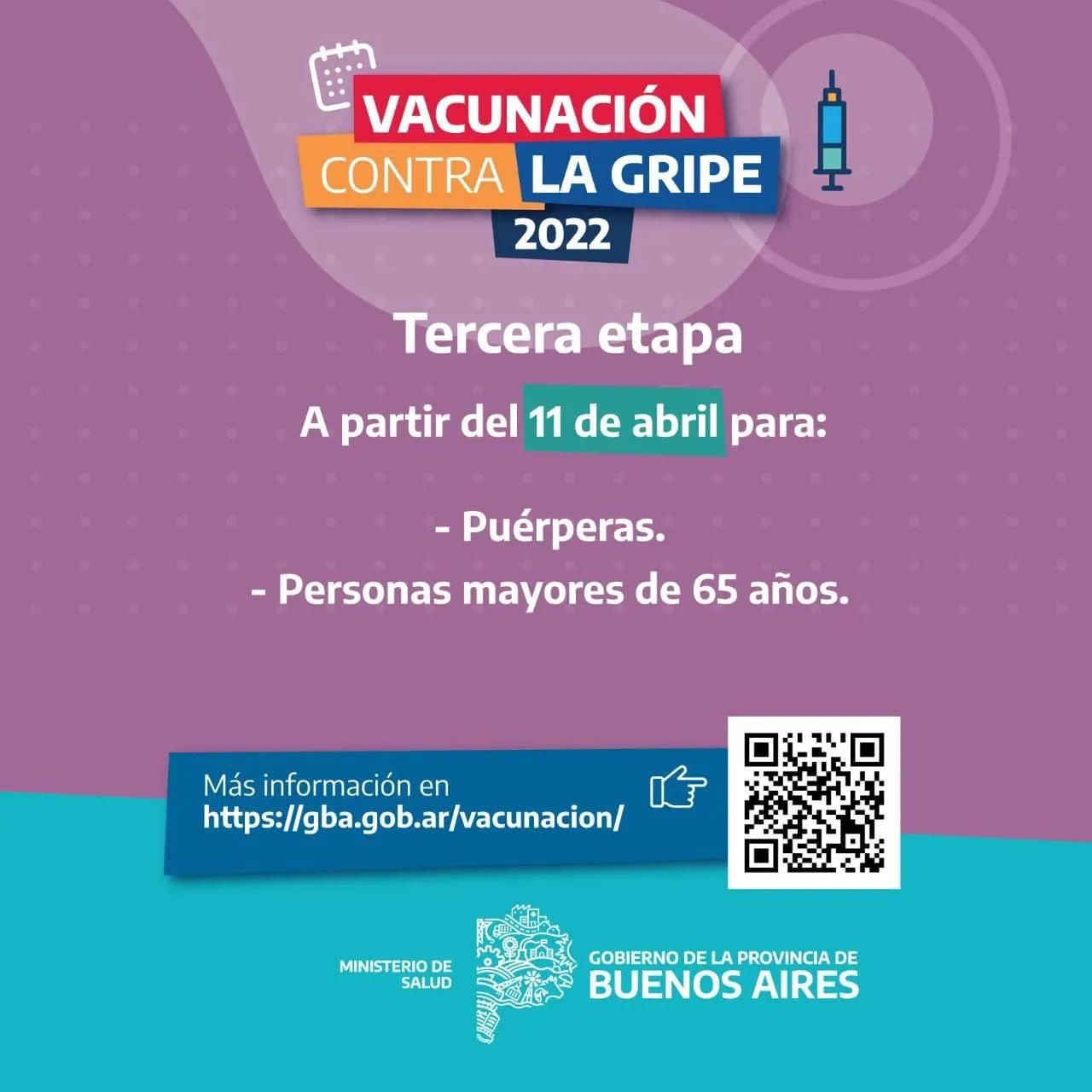 El próximo lunes 11 de abril comienza la tercera etapa de la campaña de vacunación antigripal en el distrito, que incorpora a puérperas y a los mayores de 65 años de edad, ya cumplidas las primeras dos instancias que tenían como destinatarios al personal de salud y a los niños y niñas de 6 a 24 meses.
