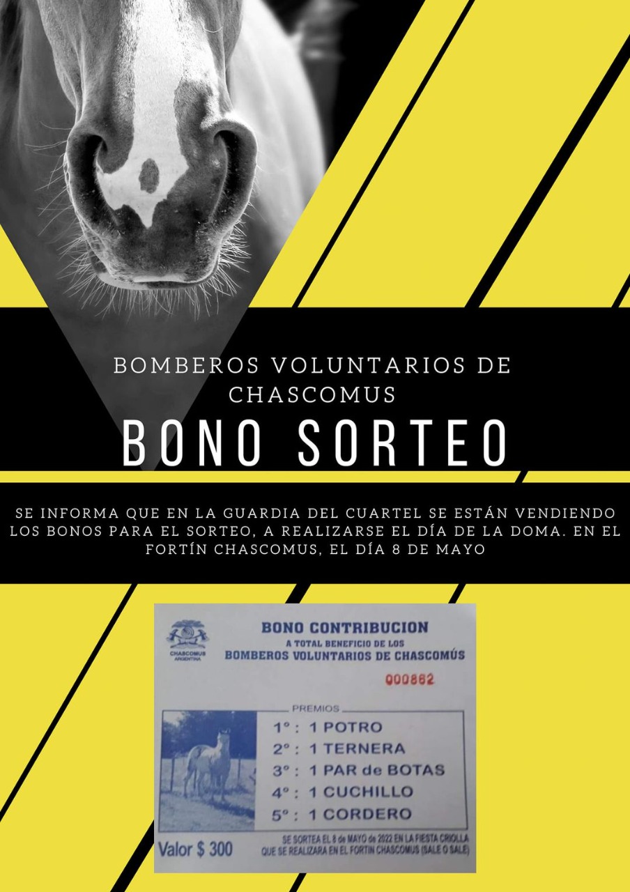 Bomberos Voluntarios de Chascomús informaron a través de sus redes sociales sobre la venta de un bono contribución a beneficio de la institución, en el marco de la Fiesta Criolla en el Fortín Chascomús. El sorteo se realizará el 8 de mayo a las 18hs.