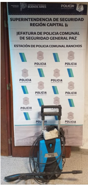 - Con fecha 11 de mayo del cte. Año se procedió al esclarecimiento caratulado “Hurto” donde un vecino había denunciado el faltante de una hidrolavadora, marca Gamma color azul, es así que se efectuaron las averiguaciones pertinentes y se logra el recupero del electrodoméstico, estableciéndose que el autor del delito resulta ser un sujeto masculino menor de edad. Interviene inicialmente ayudantía fiscal local derivándose a posteriori la causa a Fiscalía del Joven en turno por tratarse el imputado de un menor de edad.