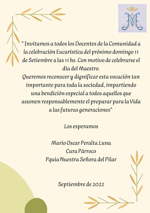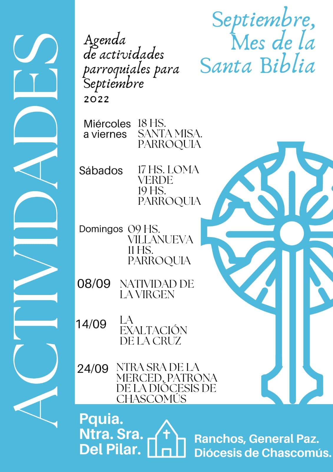 Actualidad Informa la Parroquia Nuestra Señora del Pilar 7 de septiembre de 2022124 visitas 0 minutos de lectura La Parroquia Nuestra Señora del Pilar invita e informa: