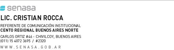 Para más información, las personas interesadas pueden comunicarse con el Centro Regional Buenos Aires Norte, sede en la ciudad bonaerense de Chivilcoy, a los teléfonos (02346) 436271/72/73 o al correo electrónico cepidemiologia@senasa.gob.ar.