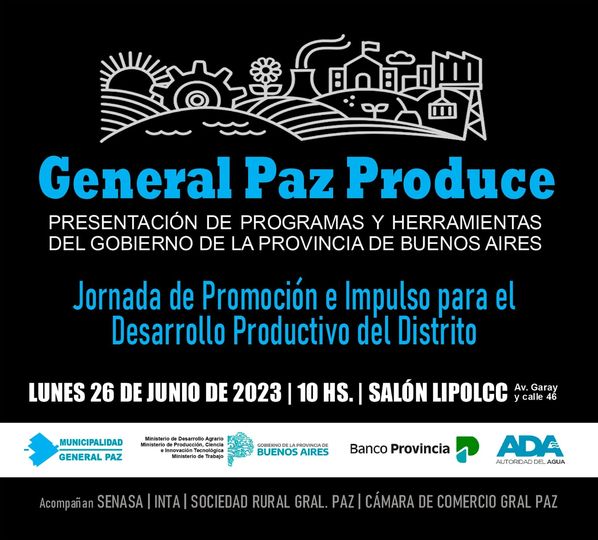 La Municipalidad de General Paz los invita a participar del encuentro con los diferentes organismos provinciales, donde presentarán las herramientas de financiamiento y asistencia a comercio, Industia Agro, PyMEs, cooperativas y productores