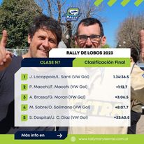 Y lo que también se repitió fue el vencedor de la general ya que, al igual que en la pasada cita de Pila, Luis Marcotti (esta vez navegado por Gerardo Calcagno) se convirtió en el dominador de ambas jornadas al mando del poderoso Peugeot 208 Maxi Rally (siendo el único representante dentro de la MR) para finalmente aventajar por 2:33.8 a Pablo Lonati/Pablo Bohl (vencedores con el Citroën DS3 en la Clase Junior) y por 3:33.9 a Luciano Goicoechea/Agustín Figueroa (los mejores de la R3 con el Fiat Palio).