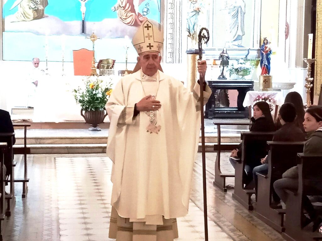 Mas trade frente al Hospital Campomar, Monseñor Carlos H. Malfa brindó una palabras para dicho nosocomio que cumplió (ese día) 75 años de vida.