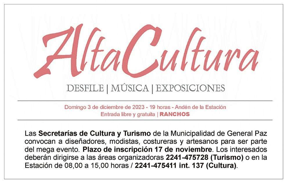 La Secretarías de Cultura y Turismo de la Municipalidad de Gral. Paz convocan a diseñadores, modistas, costureras y artesanos para se parte del mega evento.