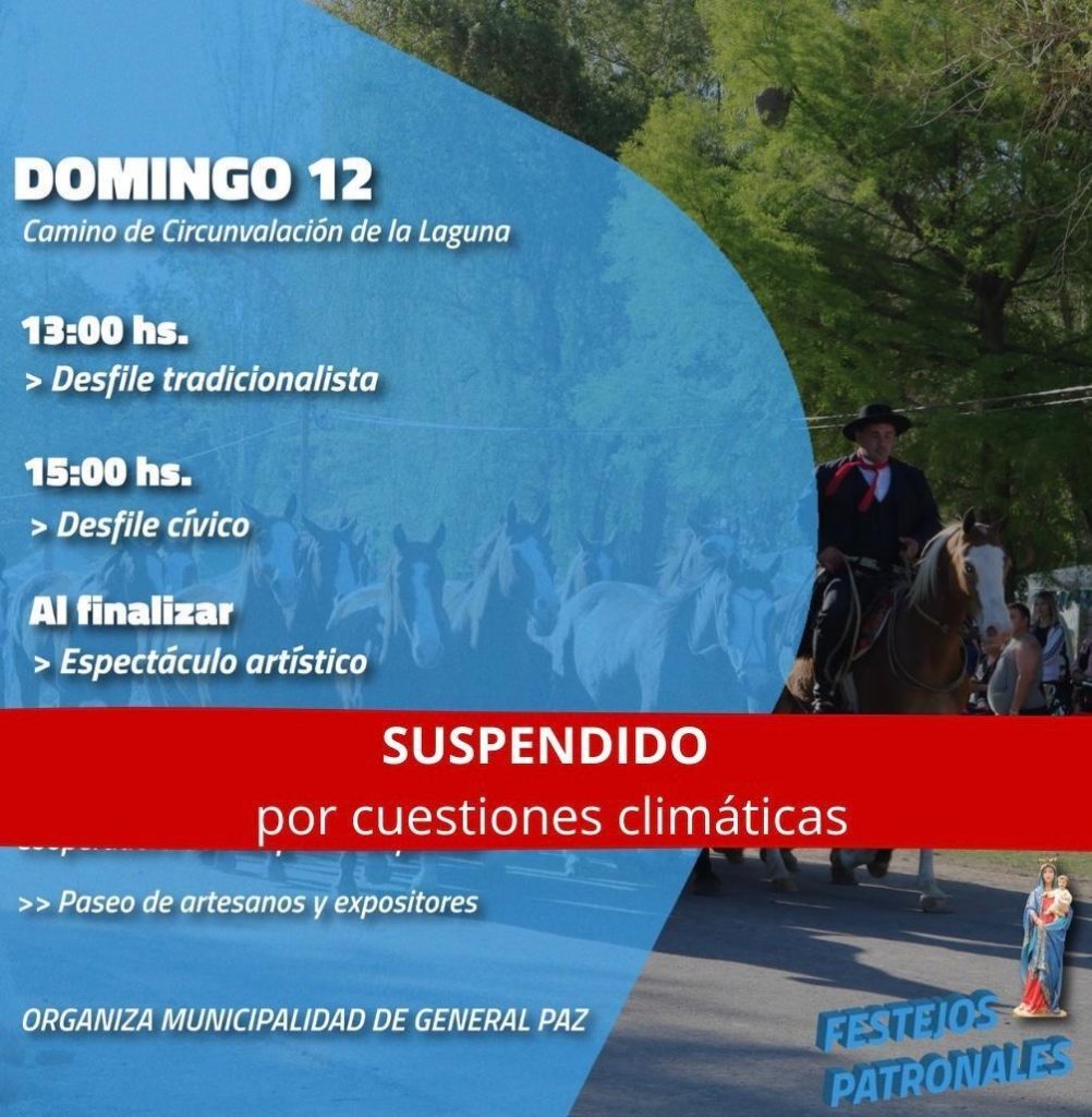 ⛈️ El desfile cívico-tradicionalista y el espectáculo artístico programados en el predio de la Laguna para el domingo en Honor a la Santisima Virgen del Pilar, quedan suspendidos.