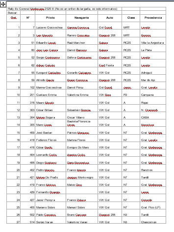 Actualidad LISTADO DE INSCRIPTOS RALLY «PAGOS DEL TUYU» 4 de noviembre de 202564 visitas 0 minutos de lectura