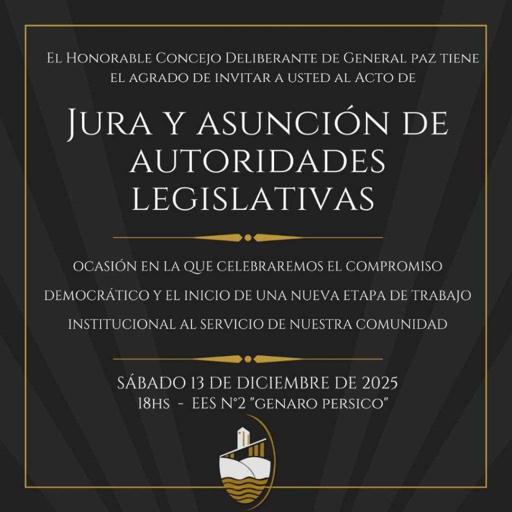 Actualidad General Paz: JURA Y ASUNCION DE AUTORIDADES LEGISLATIVAS 11 de diciembre de 202567 visitas 0 minutos de lectura